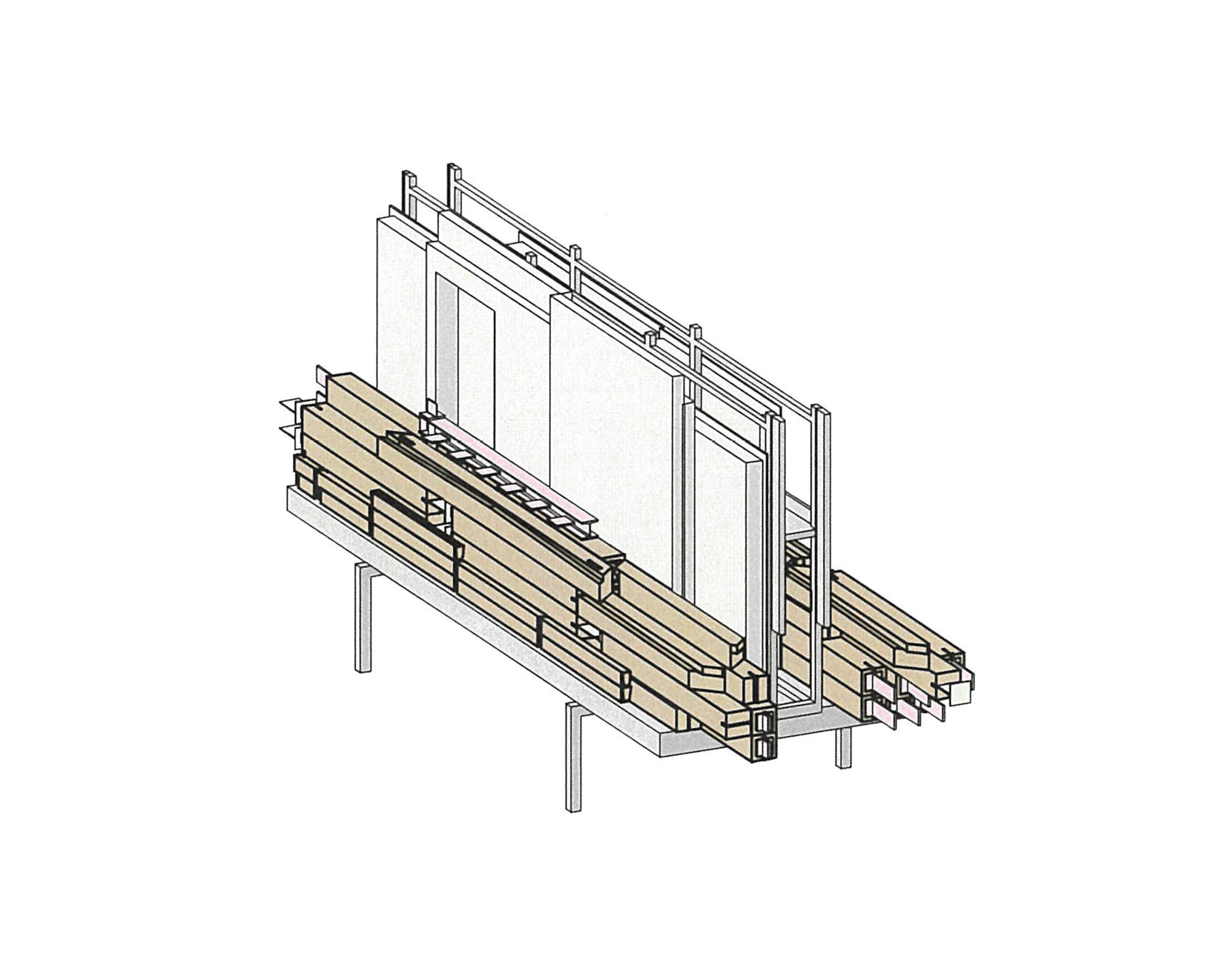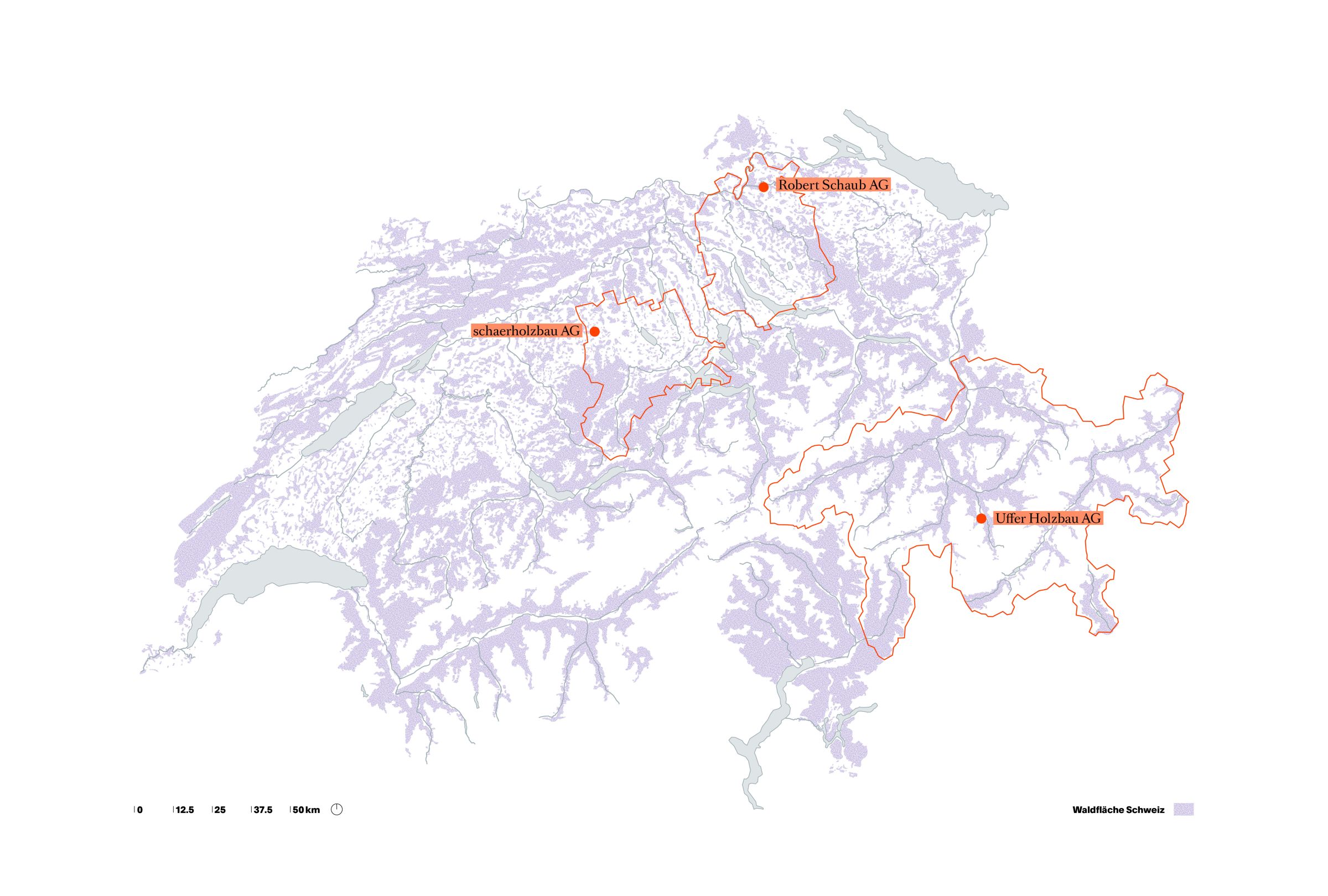 Unsere intensive Beschäftigung mit Holz nahm mit dem Projekt Sportzentrum Sargans (2008–2013) ihren Anfang. Die Frage, was der Einsatz von Holz für die Landschaft und die Region bedeutet, stand dabei früh im Zentrum. Angesichts endlicher Ressourcen wurde schnell klar: Architektur ist nicht losgelöst von Materialflüssen zu denken. Gemeinsam mit Ingenieuren und Handwerkerinnen, die bereits in frühen Projektphasen einbezogen wurden, analysierten wir den Ursprung und die Quantität des verwendeten Holzes. Besonders aufschlussreich war dabei der Abgleich mit dem jährlichen Holzwachstum in der Schweiz sowie die Erhebung der geografischen Distanzen zwischen Wald, Werkstatt und Baustelle.